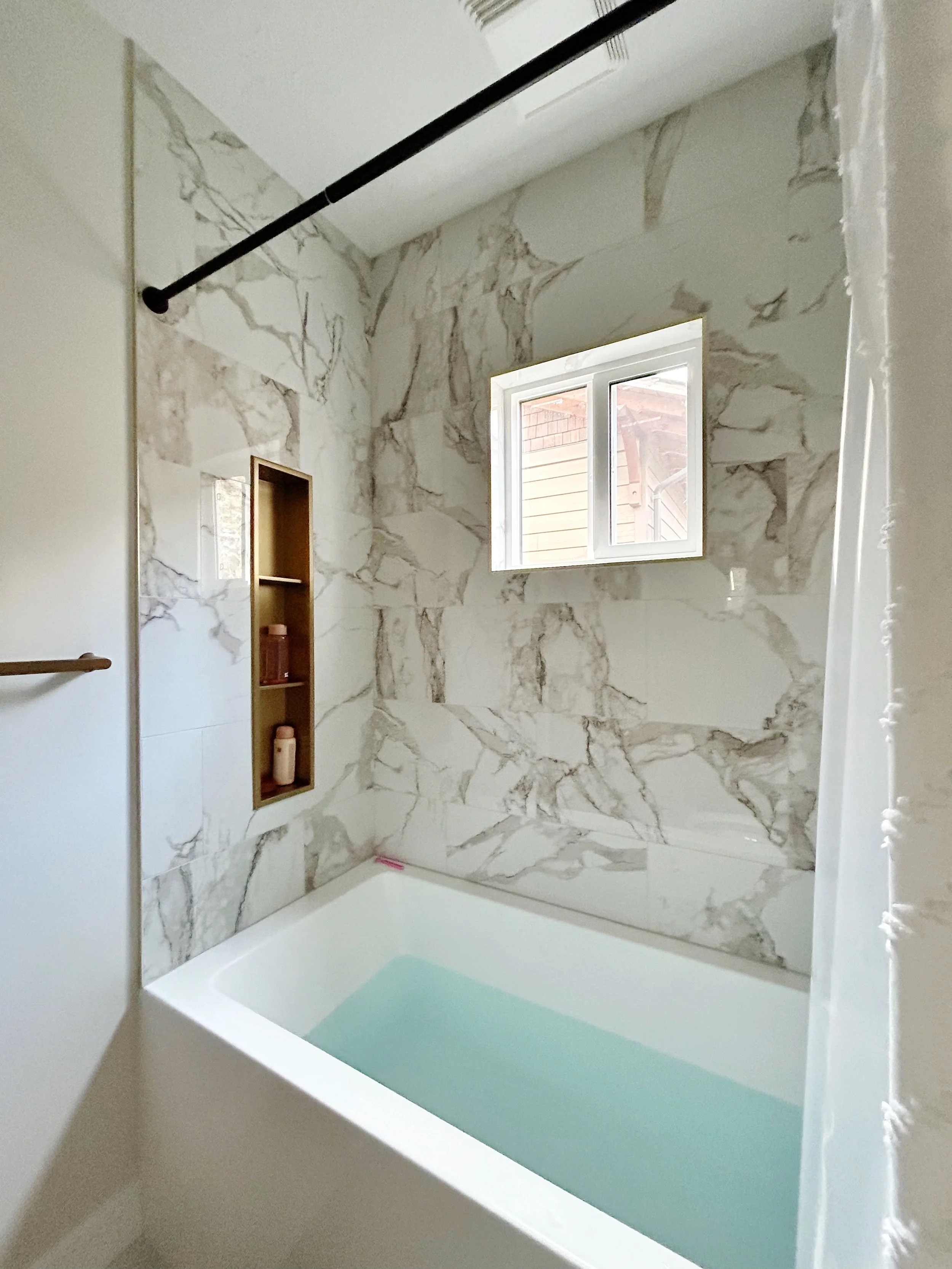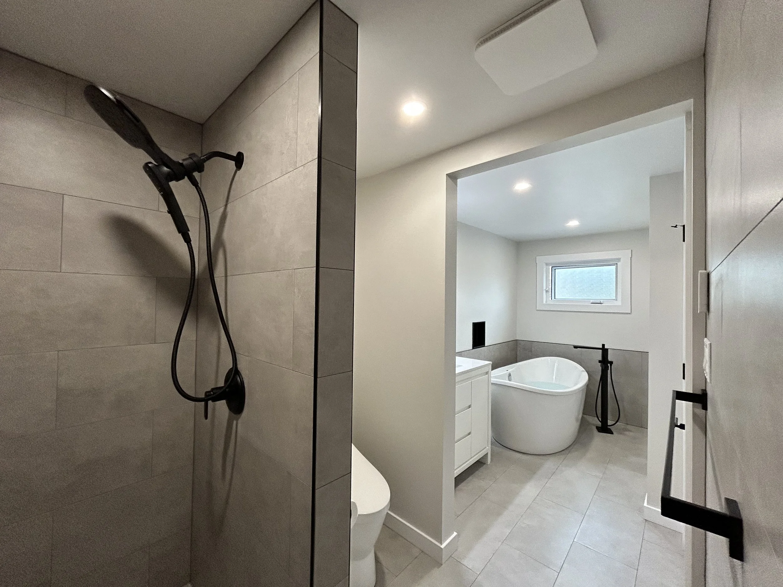 New tub installation. Tiled shower walls in Smithers, BC. Bathroom renovations in Smithers, BC.