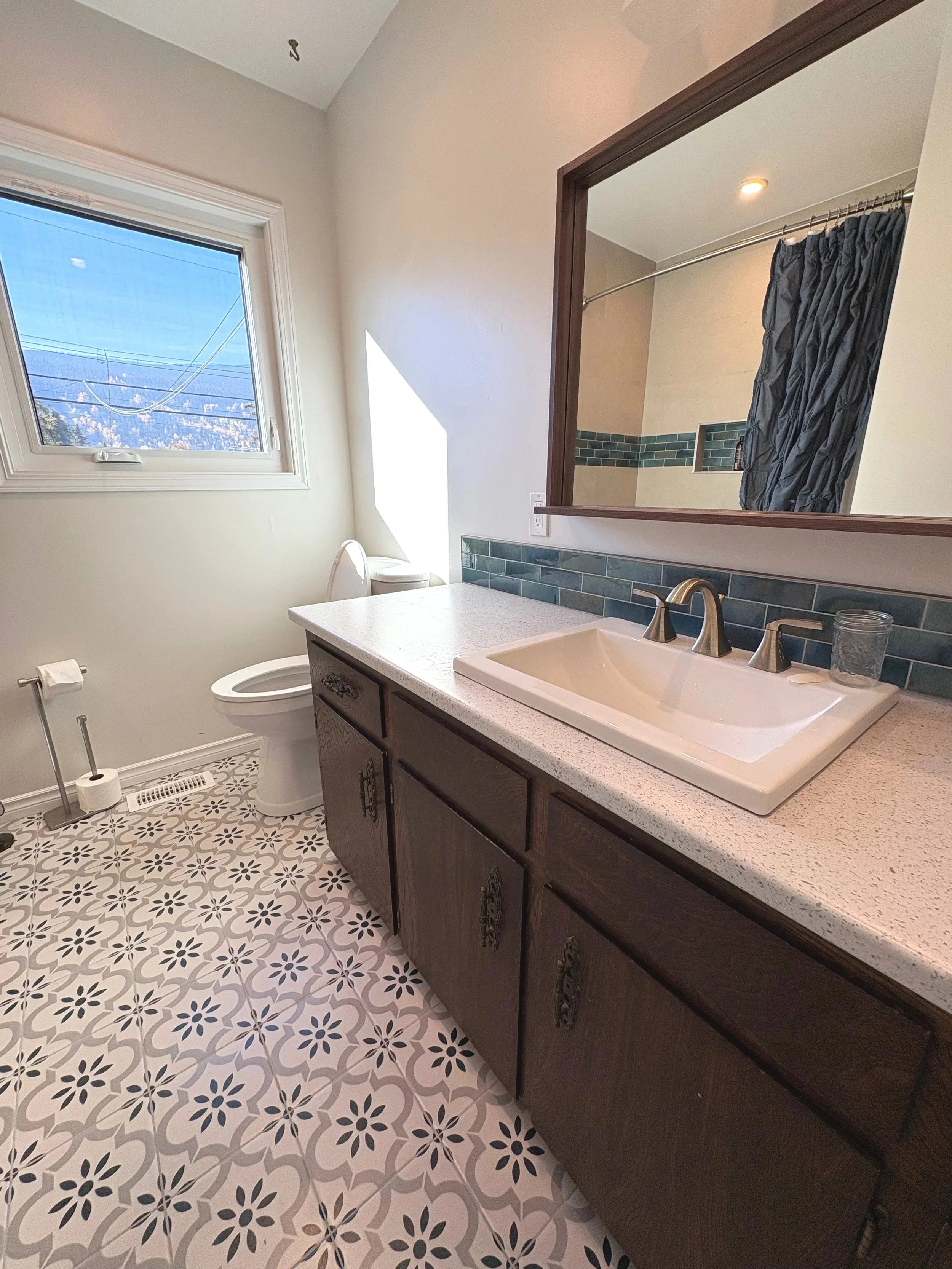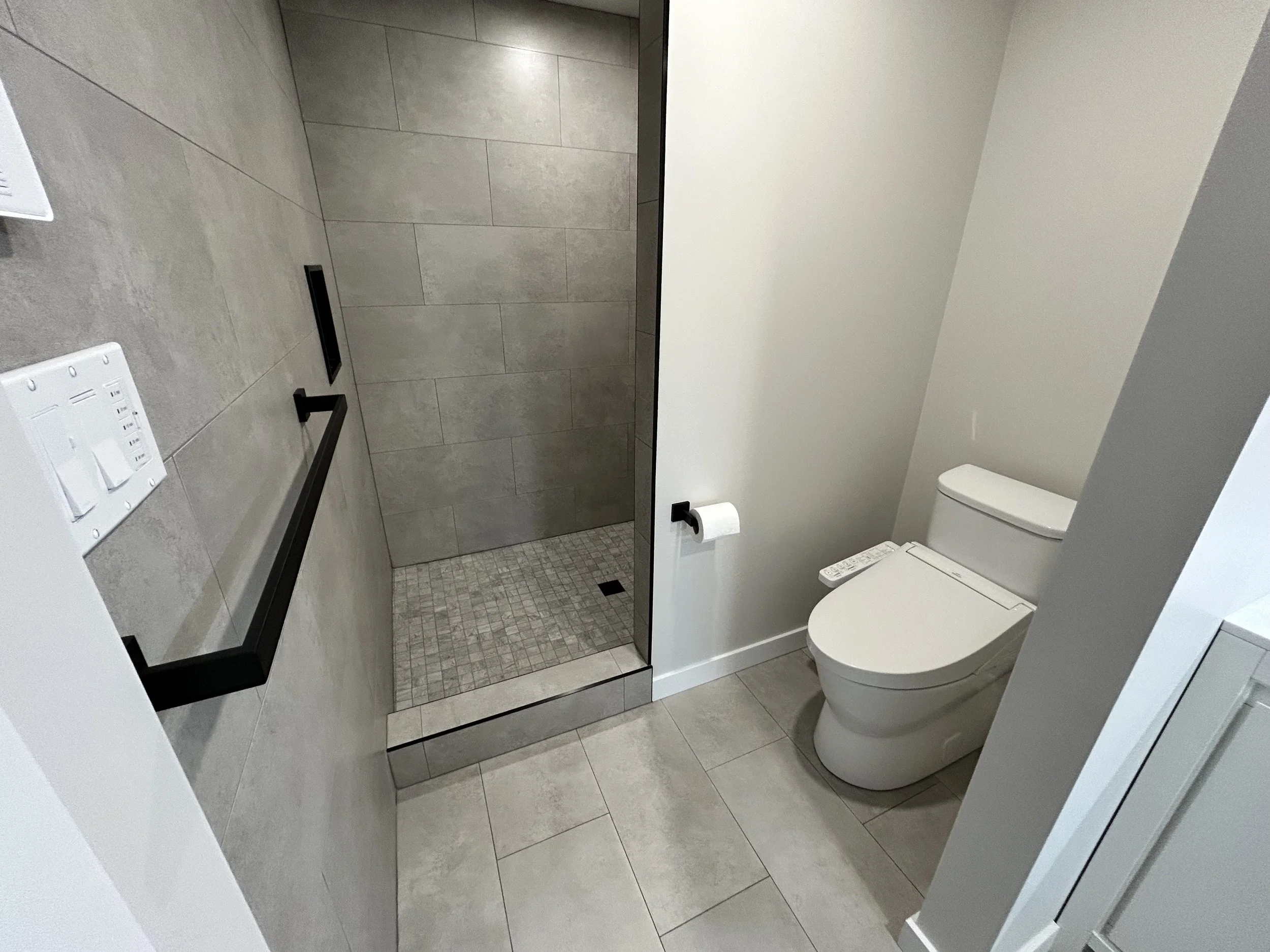 Tiled walk-in shower. Tiled-heated floor. Offering heated-floor installation services in Smithers, Telkwa, and the surrounding communities.